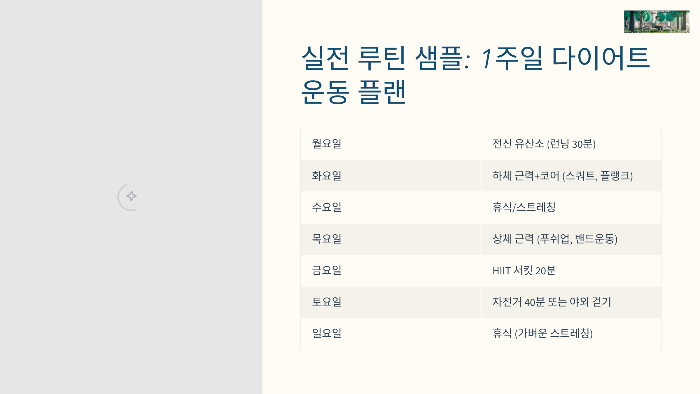 실전 루틴 샘플 - 1주일 다이어트 운동 플랜